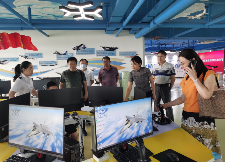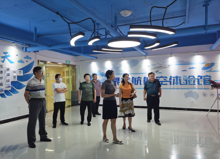 2022年8月16日下午,长清区教育和体育局副局长巨传祯、教育科科长潘霞及部分学校代表一行莅临泉之航航空航天体验馆对实践活动项目进行参观考察。