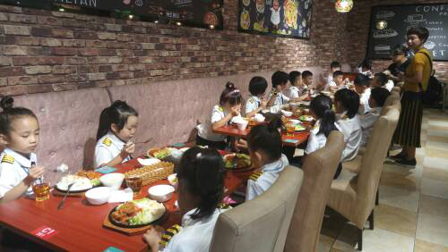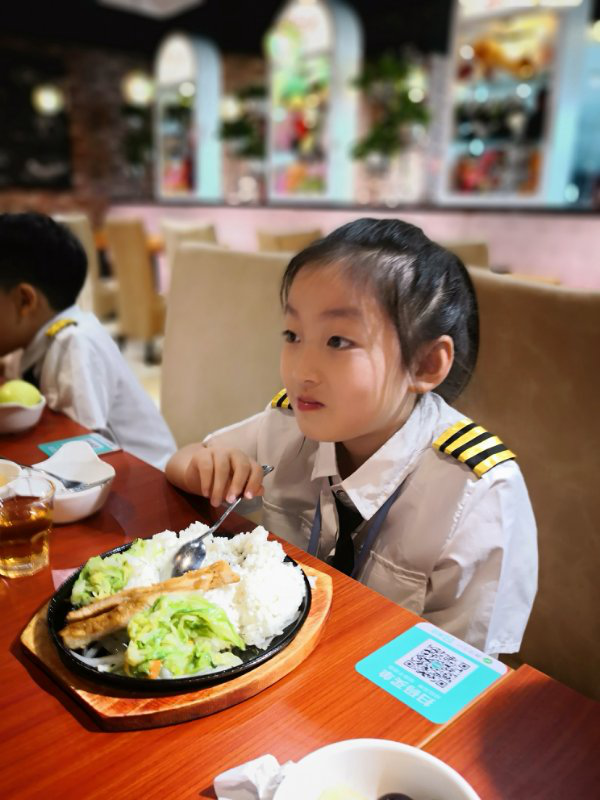 午餐时间小机长们开心的享用属于他们的飞机餐