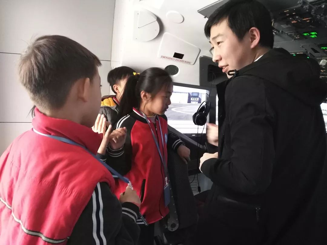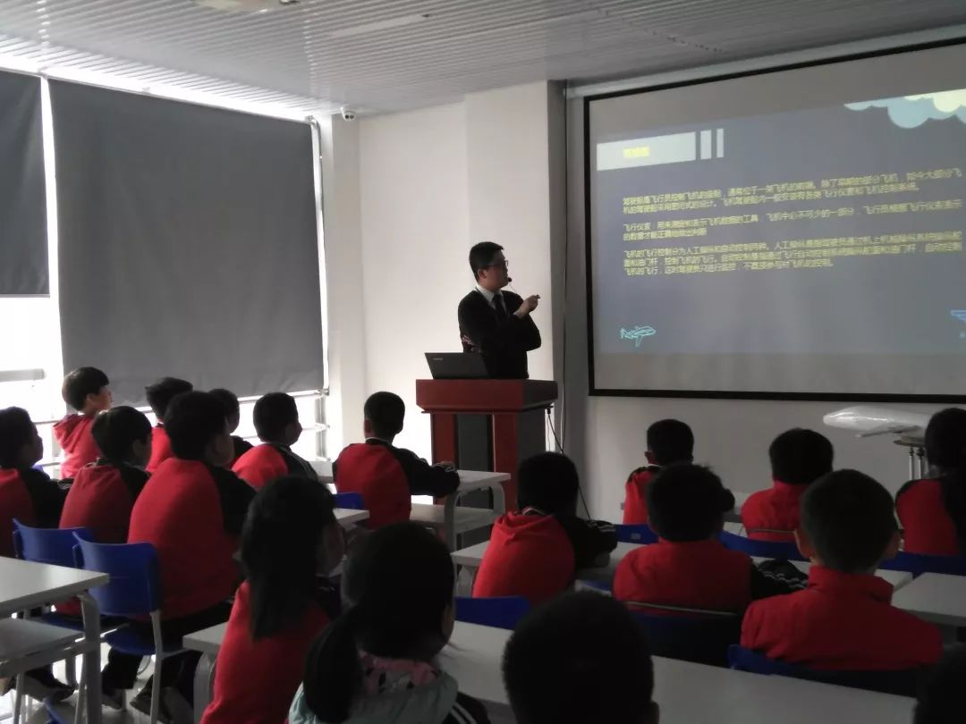 合影过后马上进入科普课堂,课堂上主要为孩子们讲解了波音737NG驾驶舱,带领孩子认识驾驶舱内地硬件设备包括飞行仪表和控制面板等,并为孩子介绍了仪表分类。紧接着教授孩子操纵飞机的基本方法和原理,并在课堂最后解答孩子们的小疑问。
