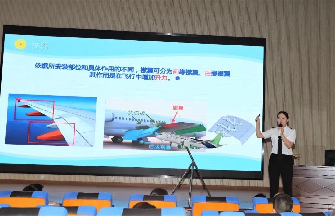 王教员用简单易懂的表达方式,以固定翼飞机为例生动的向同学们普及了飞机的五大基本结构,以及各个结构的构成和作用原理等。能够让同学们区分起落架的布局形式,平尾垂尾的功能,掌握襟翼副翼的作用等等。